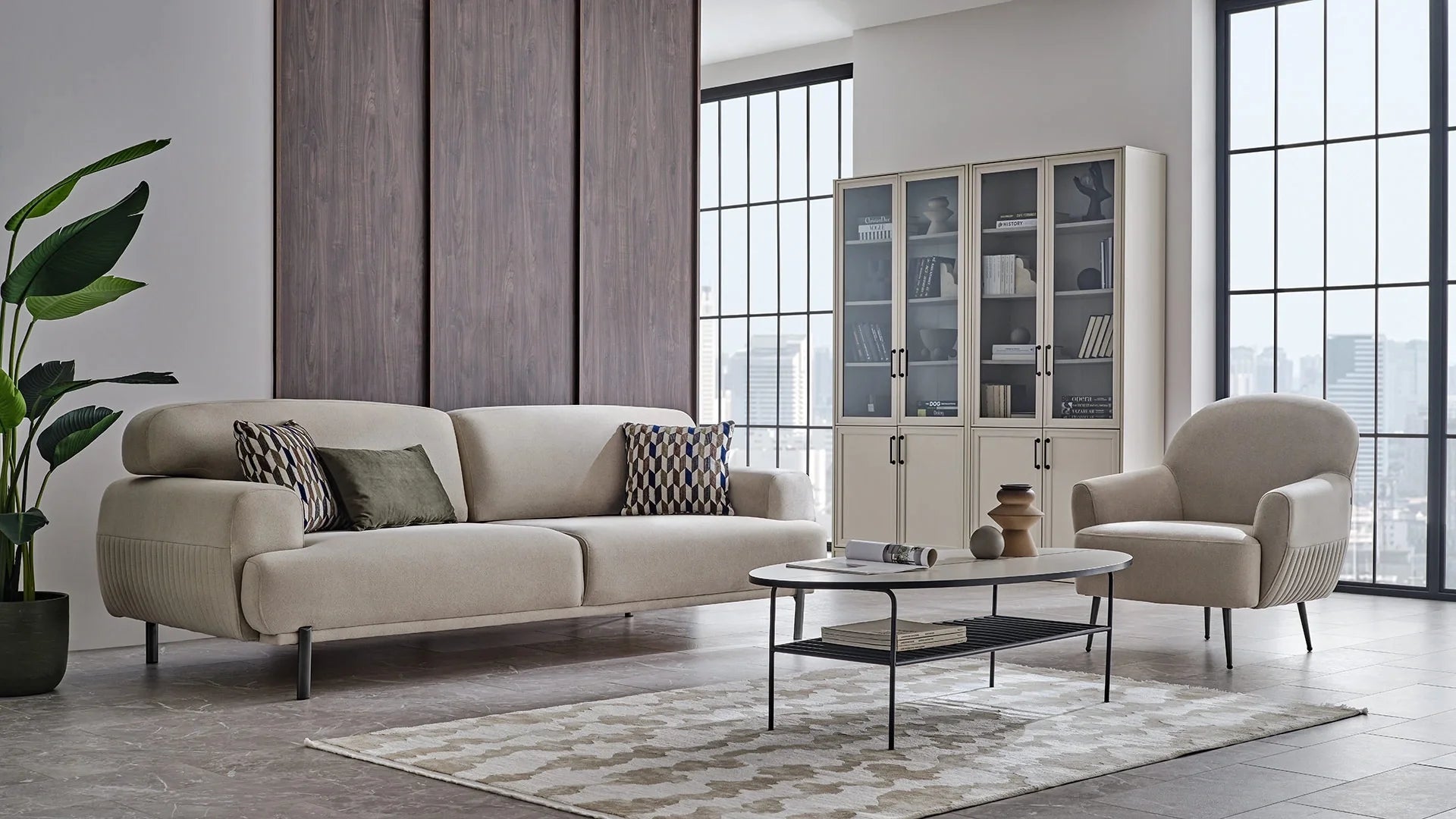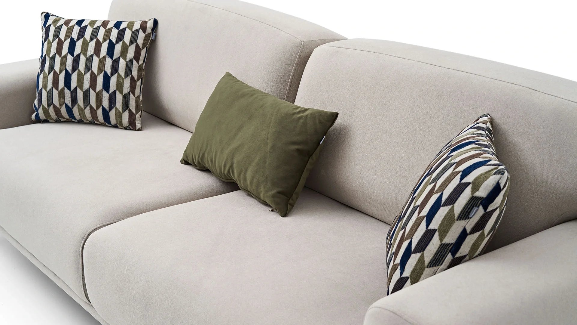 The Bend 3 Seater Sofa with bronze metal legs blends minimalist elegance with romantic softness. Designed with a relax backrest mechanism, it not only offers exceptional comfort but also converts into a single bed—ideal for hosting guests or simply unwinding. Its rounded lines, quilted stitching details, and refined velvet-textured cream fabric complete the sophisticated look. Add timeless comfort and style to your living room with Bend.
