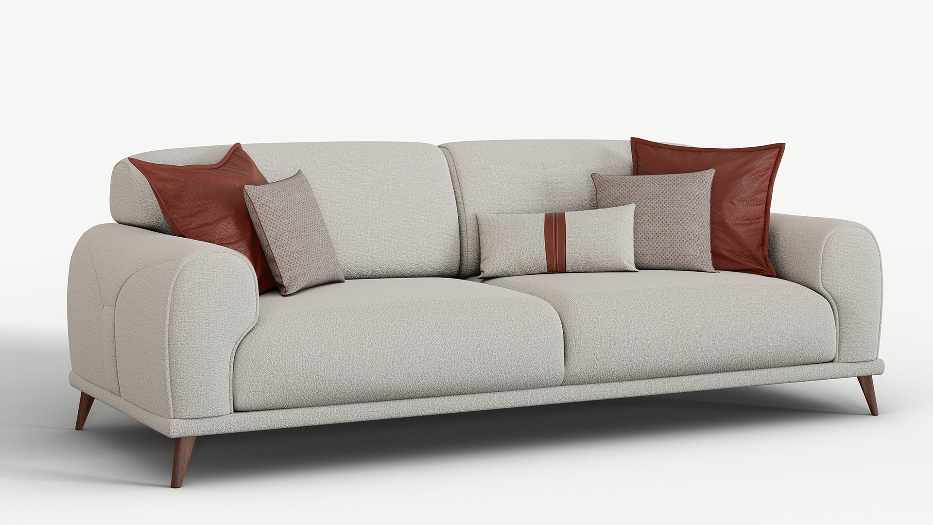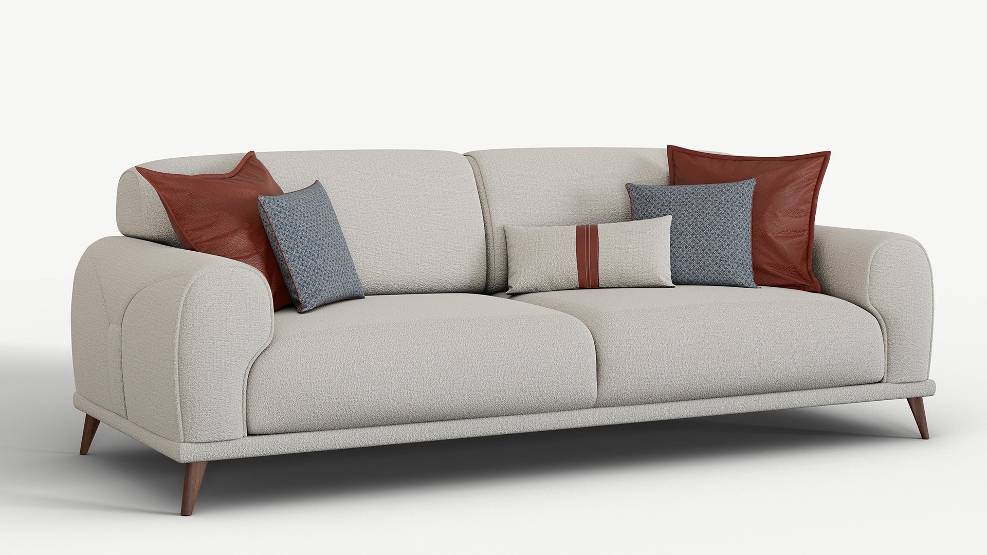 The Brita 3 Seater Sofa Bed will bring comfort to your living room or halls. Besides comfort, it beautifies your decoration with its sporty and modern design. Buy the Brita Triple Sofa to experience a pleasant design with wooden legs, stylish stitching lines, and light-colored, self-textured fabric.