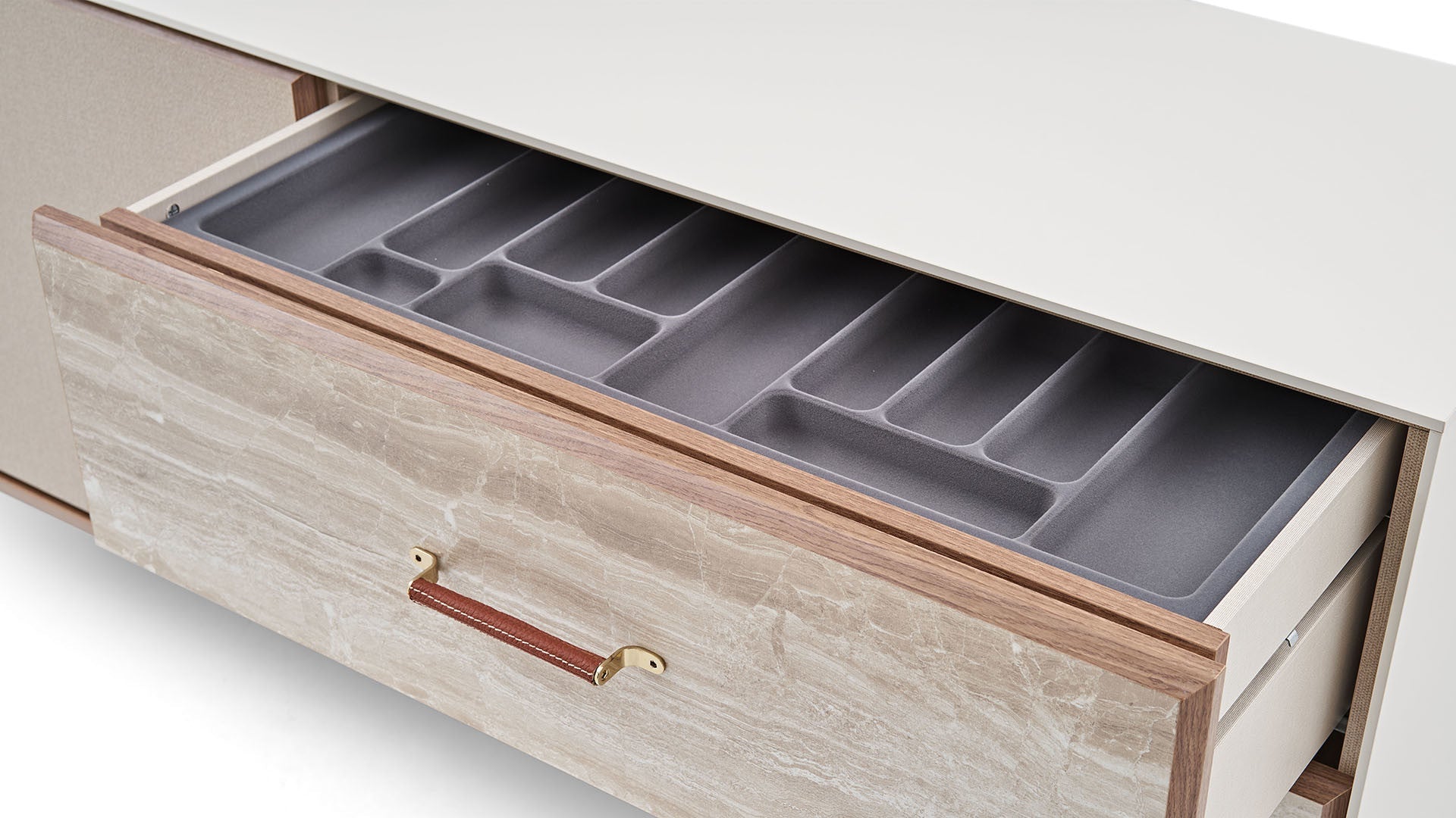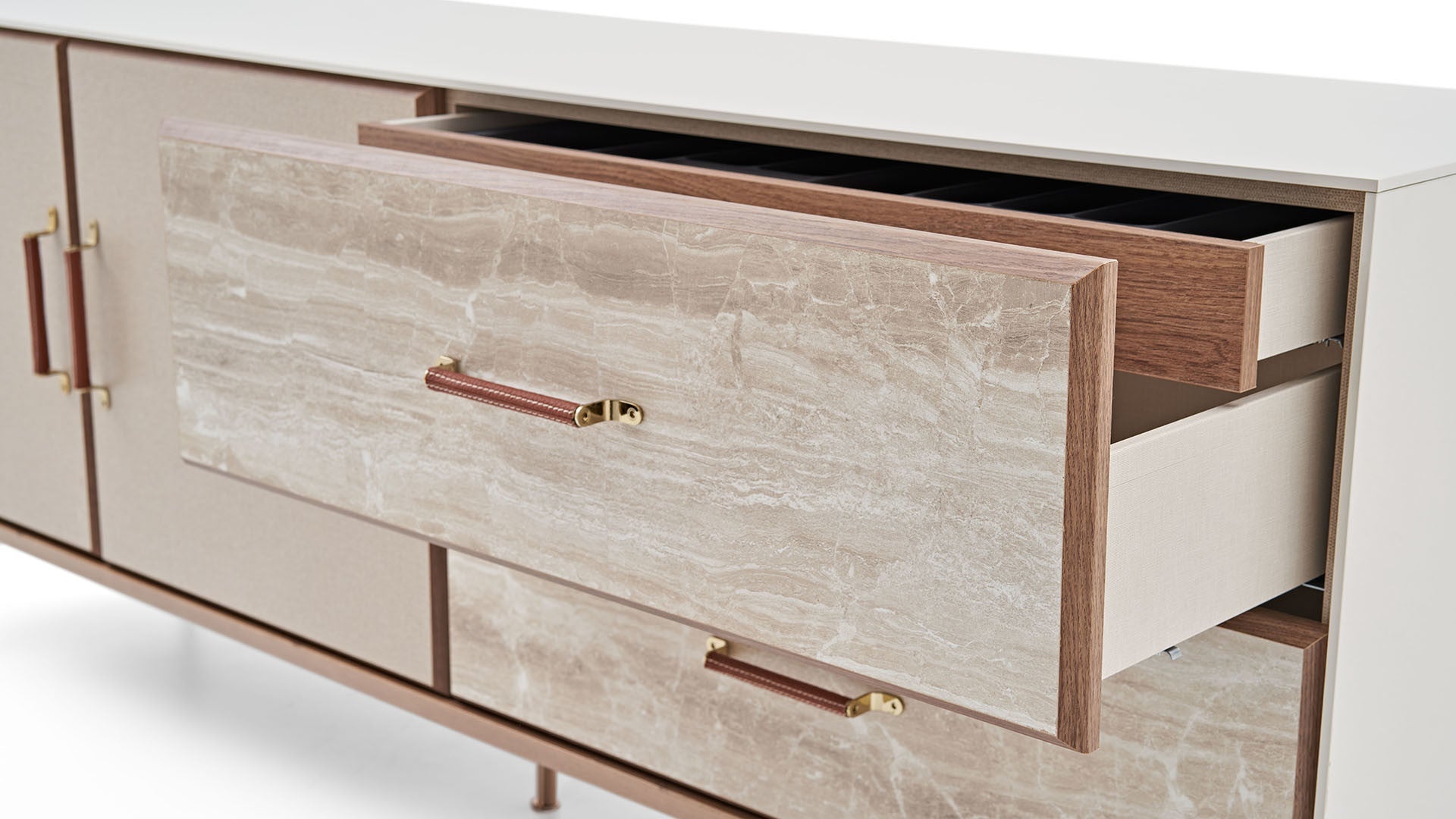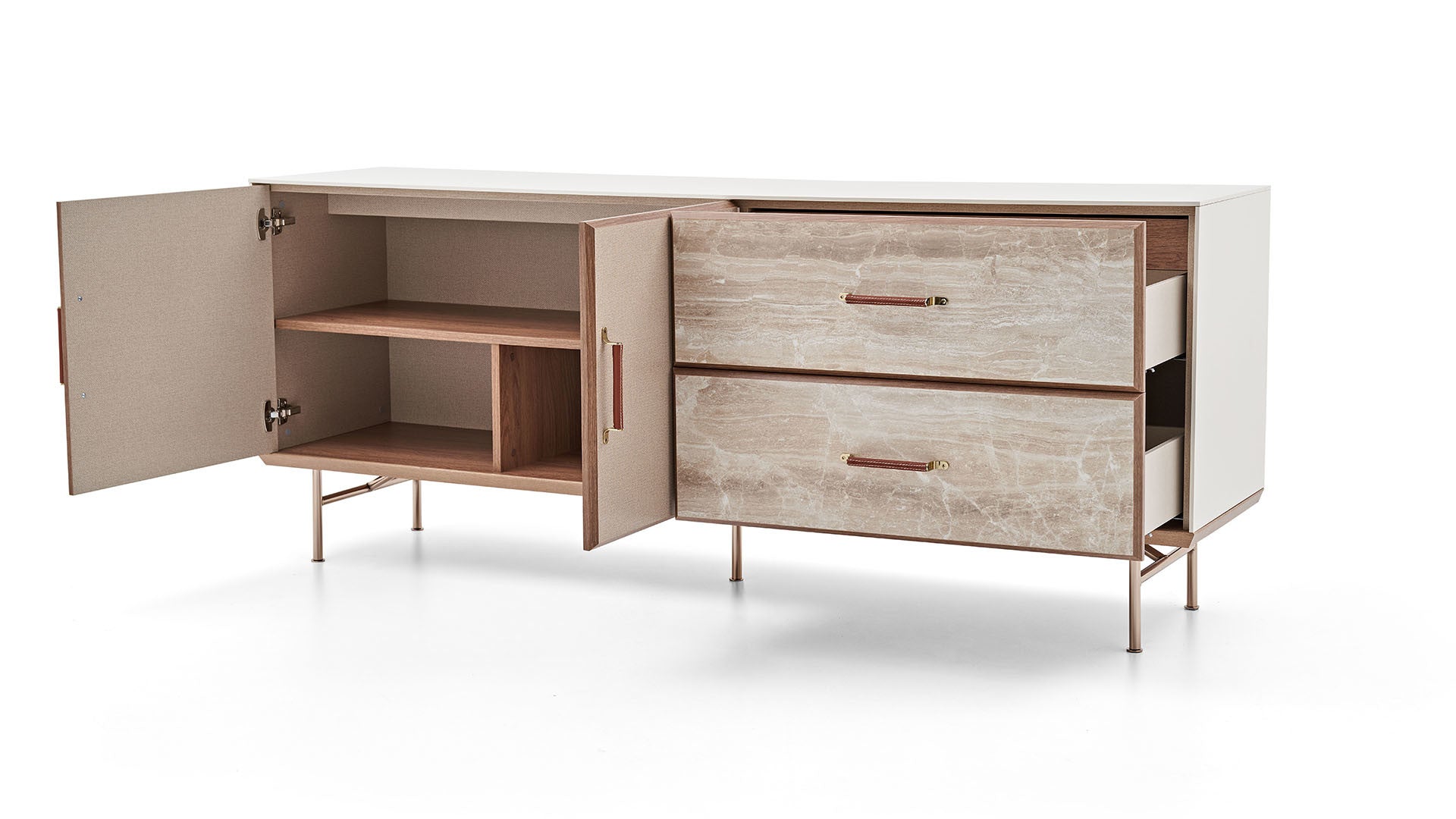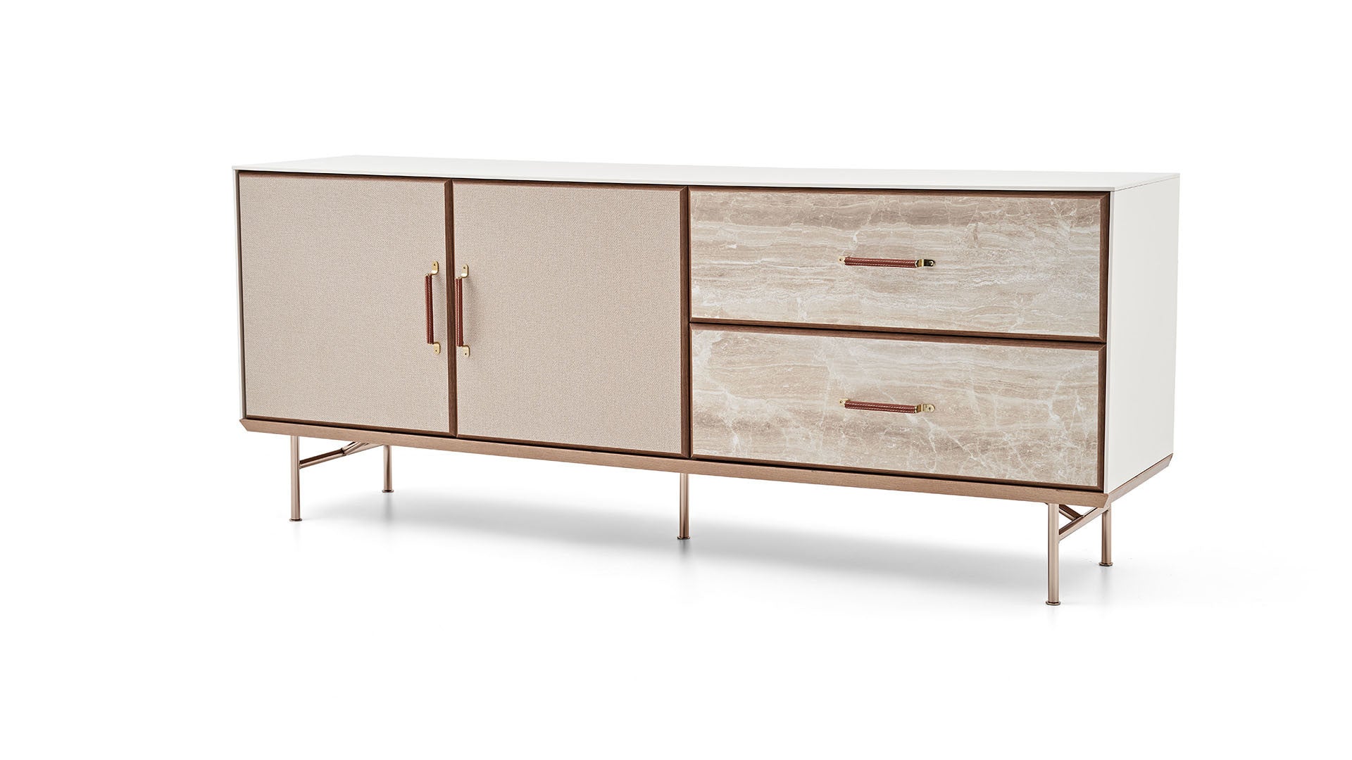 The Brita Sideboard is among the complementary parts of the dining room. It adds elegance to your space with details specific to the Brita Collection. The chest of drawers offers practicality with its two-door and two-drawer storage area. Complete the look of your dining area with the Brita Chest of Drawers now!