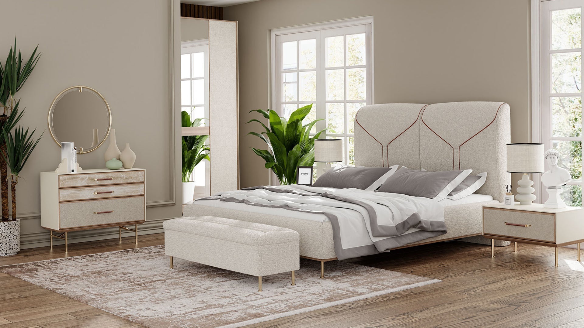 The Brita Wide Drawer not only adds a stylish touch to your bedroom but also offers sufficient storage space for your belongings. The drawer gains a more elegant look with its gold-colored legs and drawer handles with a modern style. Start creating the bedroom of your dreams with the Brita Wide Drawer!