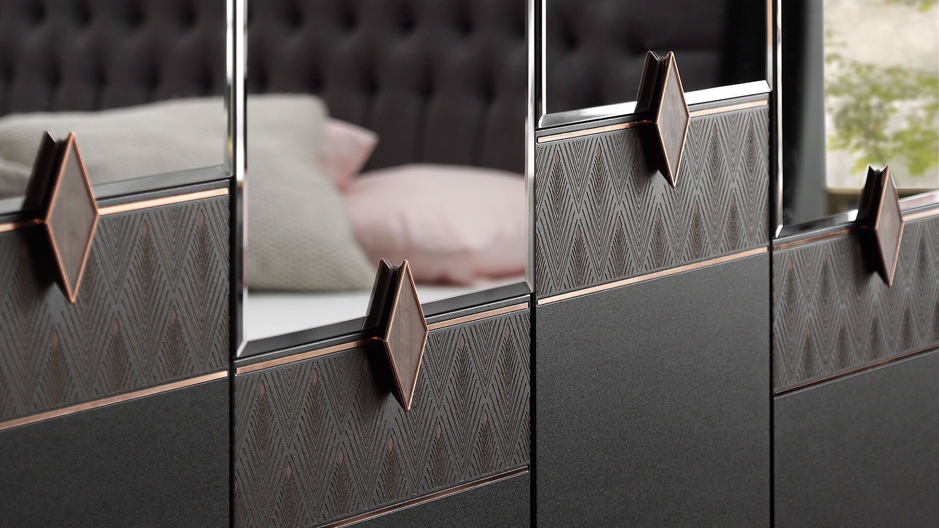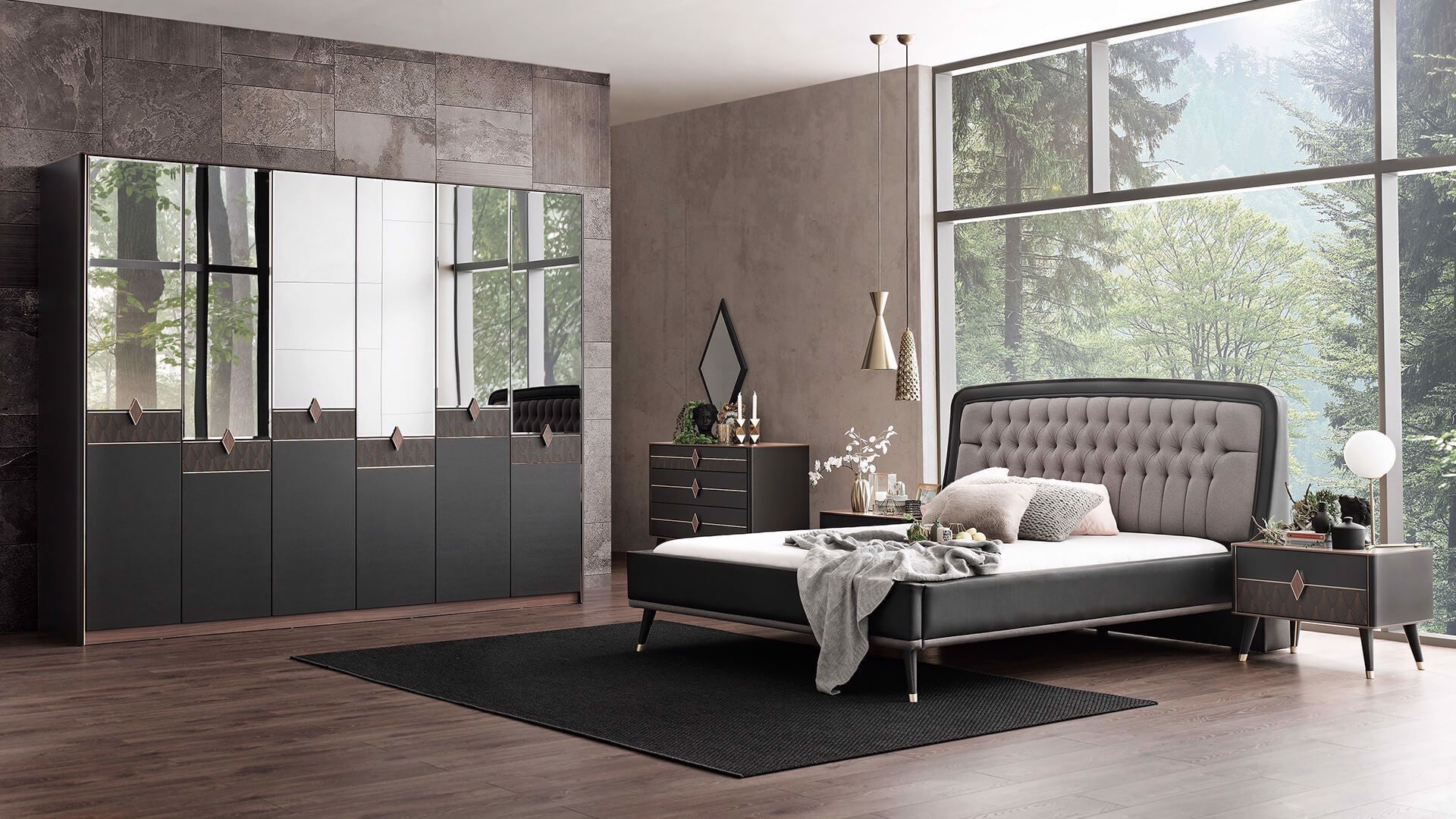 The Diamond 6-Door Wardrobe takes its place in your bedrooms with its special design. The mirrors on the covers add depth to your living space. Its diamond-like handles, elegant lines, and other design details also stand out. Use it alone or together with the other products in the Diamond collection.
