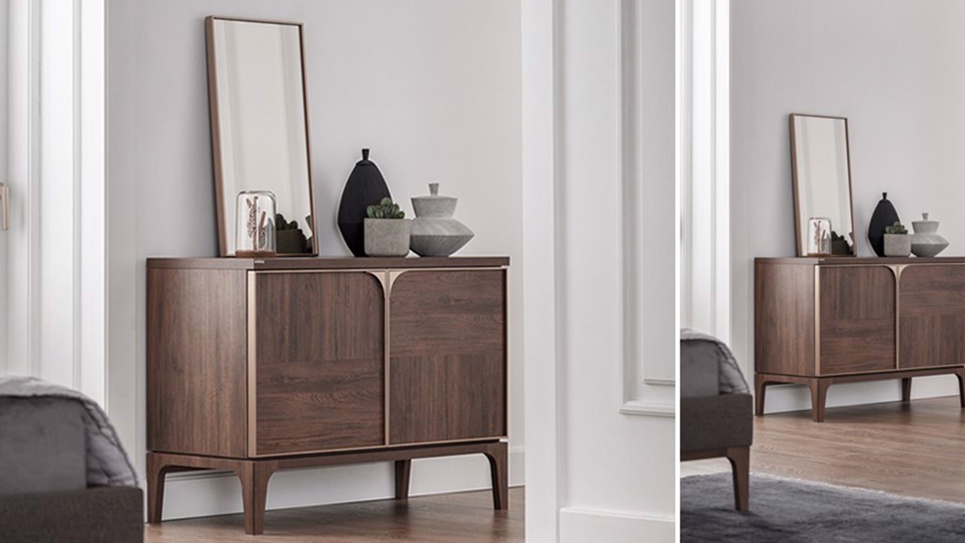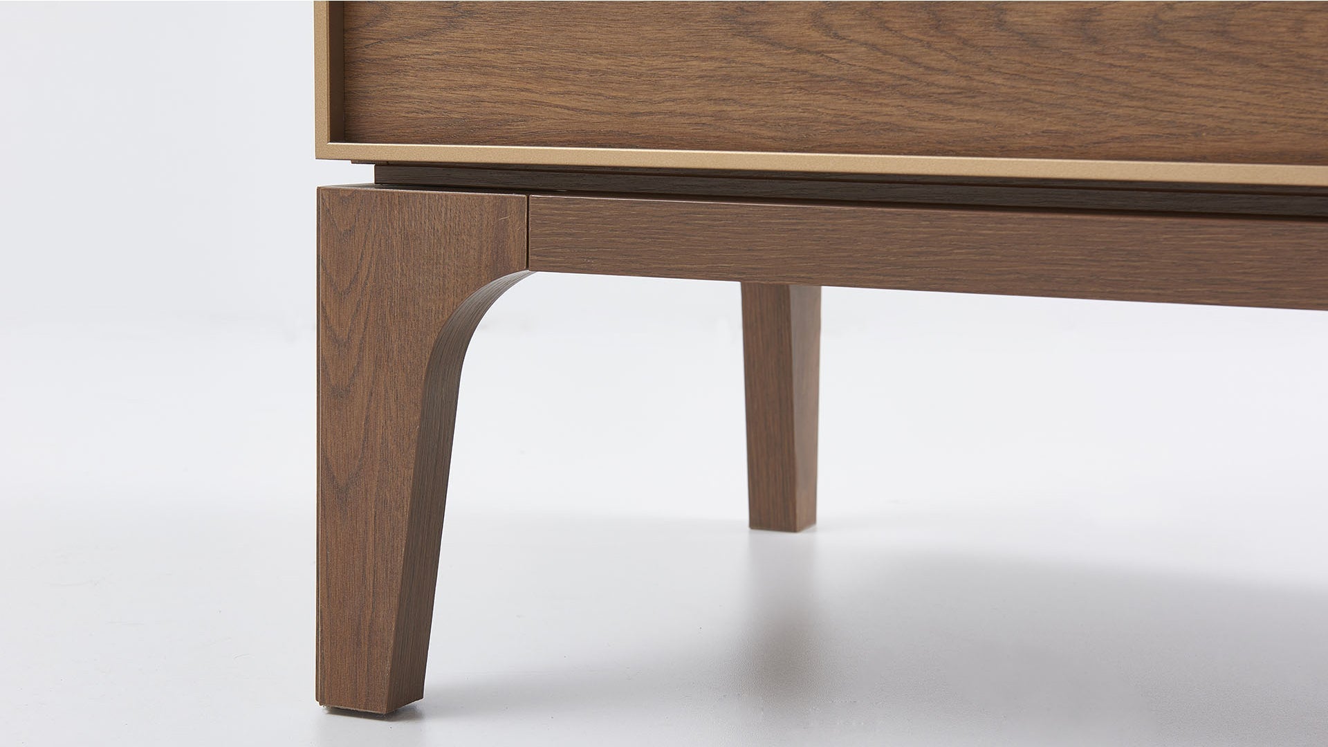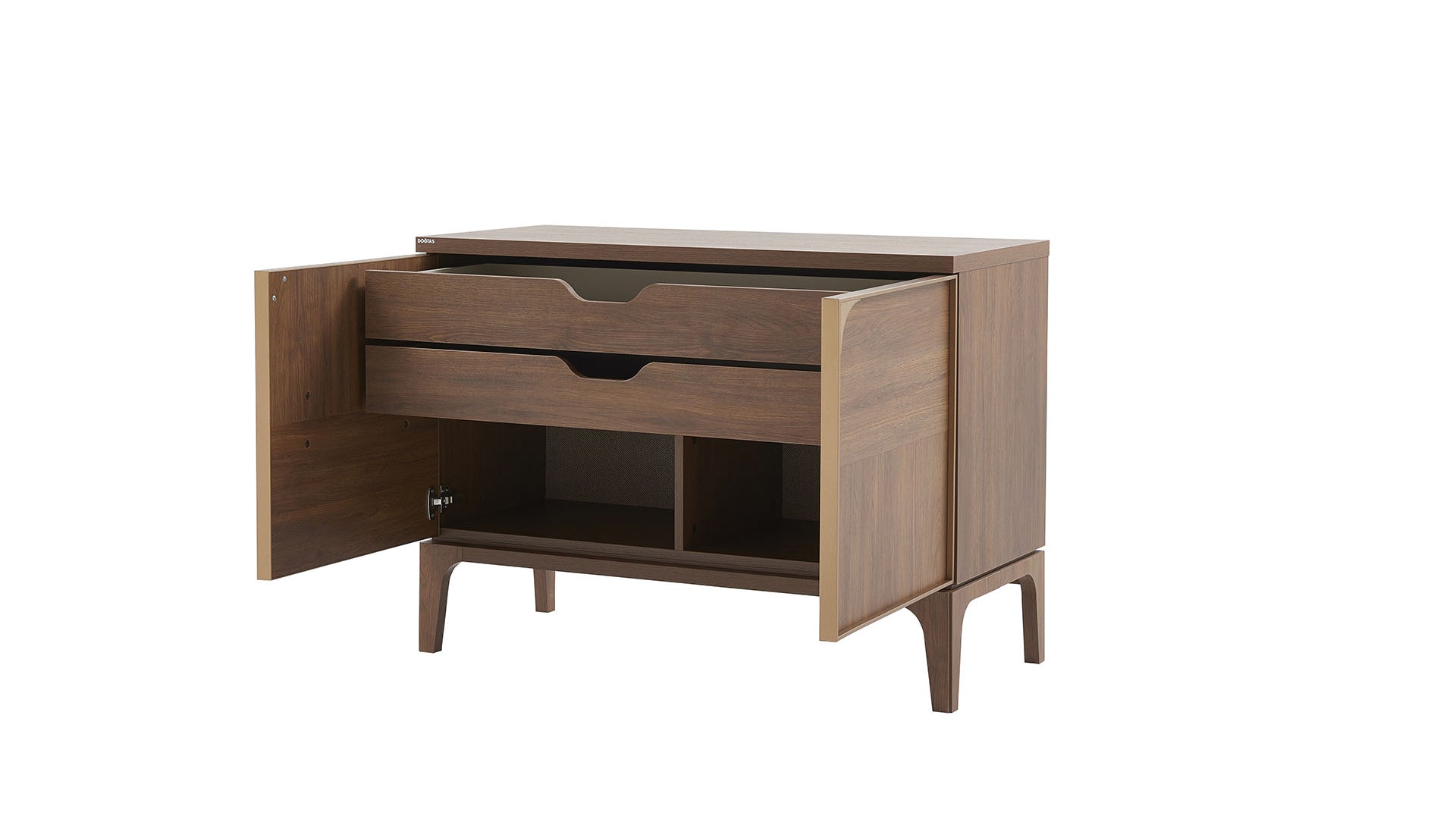 Meet the Gold Drawer: A timeless piece of furniture for your bedroom with its quality, craftsmanship, plain and original design. You can complete your bedroom decoration by purchasing the product, in which the walnut-colored wood is enriched with thin golden lines.