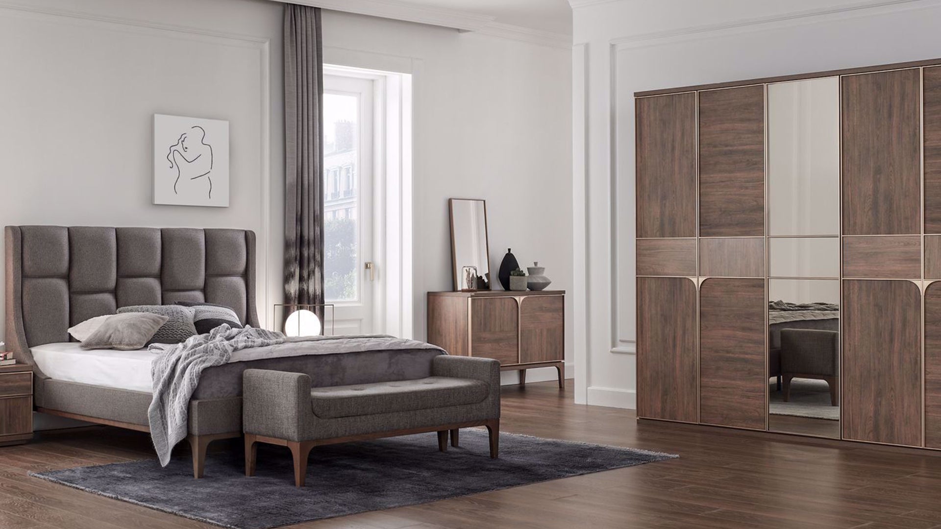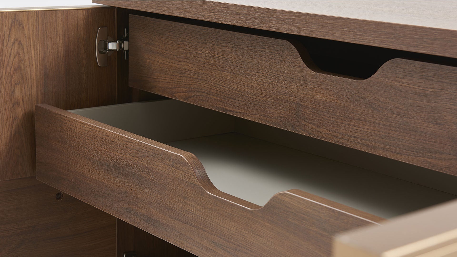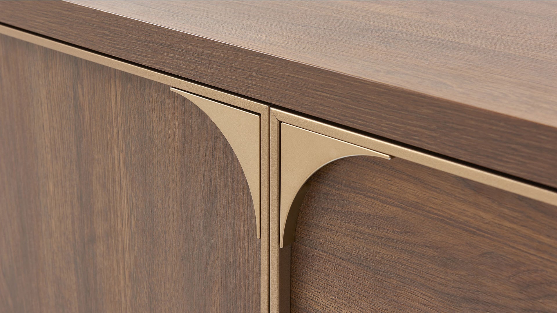 Meet the Gold Drawer: A timeless piece of furniture for your bedroom with its quality, craftsmanship, plain and original design. You can complete your bedroom decoration by purchasing the product, in which the walnut-colored wood is enriched with thin golden lines.
