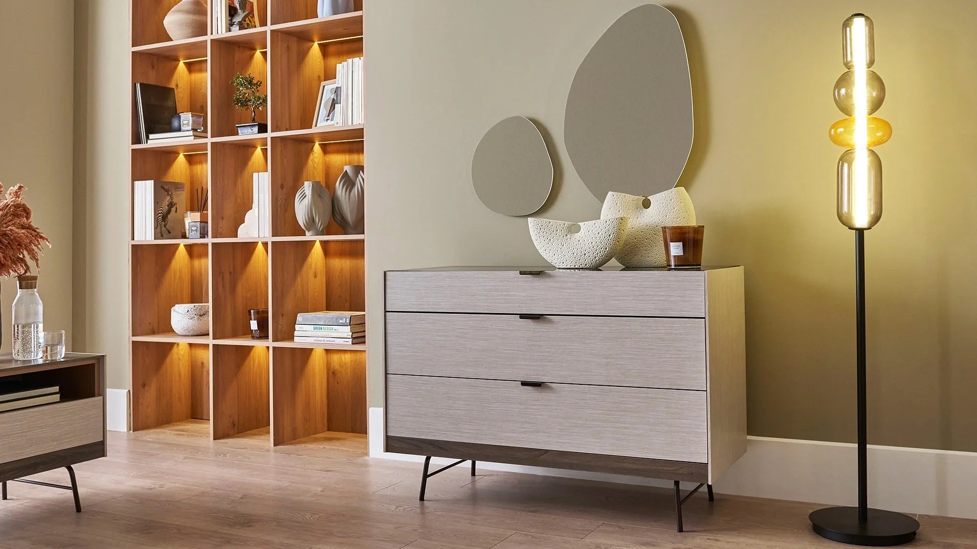 Use it above your sideboard or dresser to add light, style, and a spacious feeling to your living or dining area.