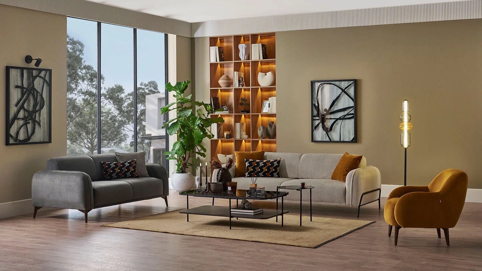 - Pillow 1: 1 piece, Size: 50x50 cm (19.7"x19.7"), Color: Mustard Knit