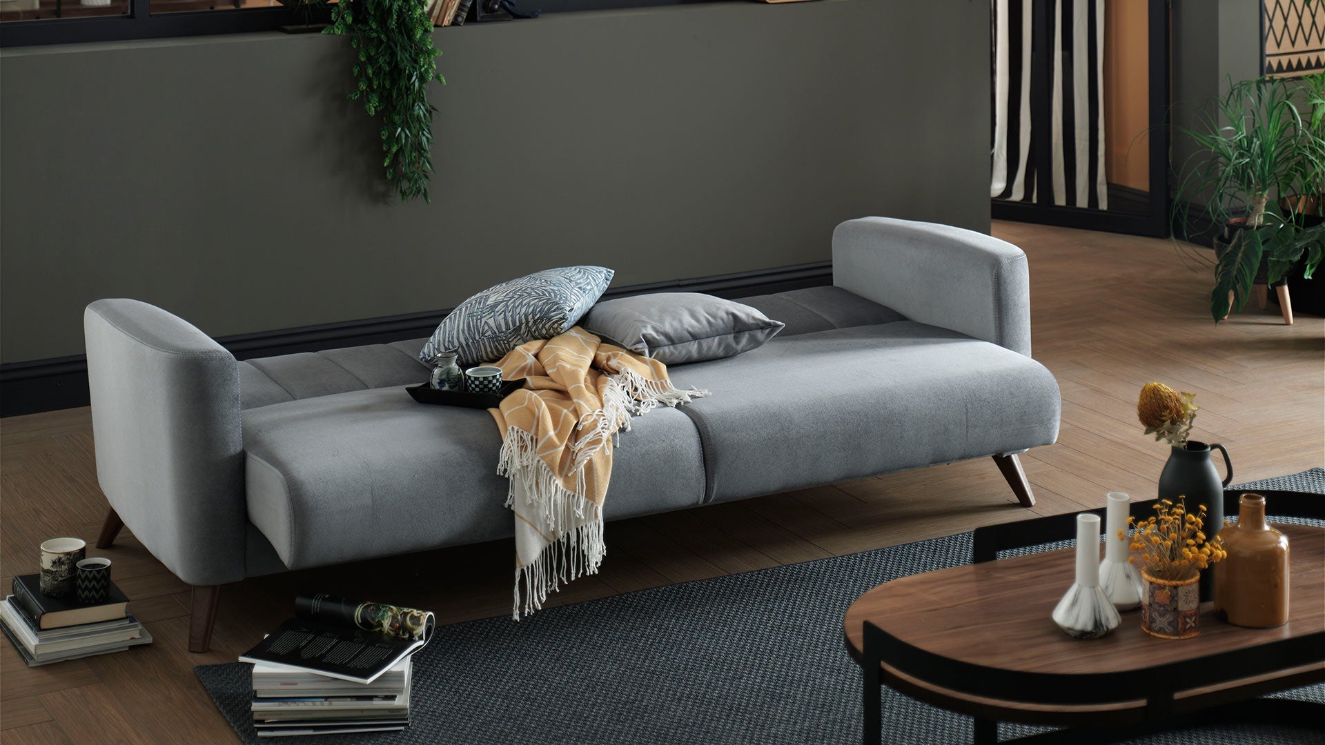 - Seating Capacity: 3 Seater, Width: 89', Depth: 32,7', Height: 30,7', Seat Width: 75,6', Seat Depth: 24', Seat Height: 16,9', Back Height: 17,3', Arm Widht: 5,1', Arm Height: 18,5', Bed Function: Yes, Bed Width: 75,6', Bed Depth: 42,1', Leg Material: Plastic, Leg Color: Walnut, Leg Height: 5,9',