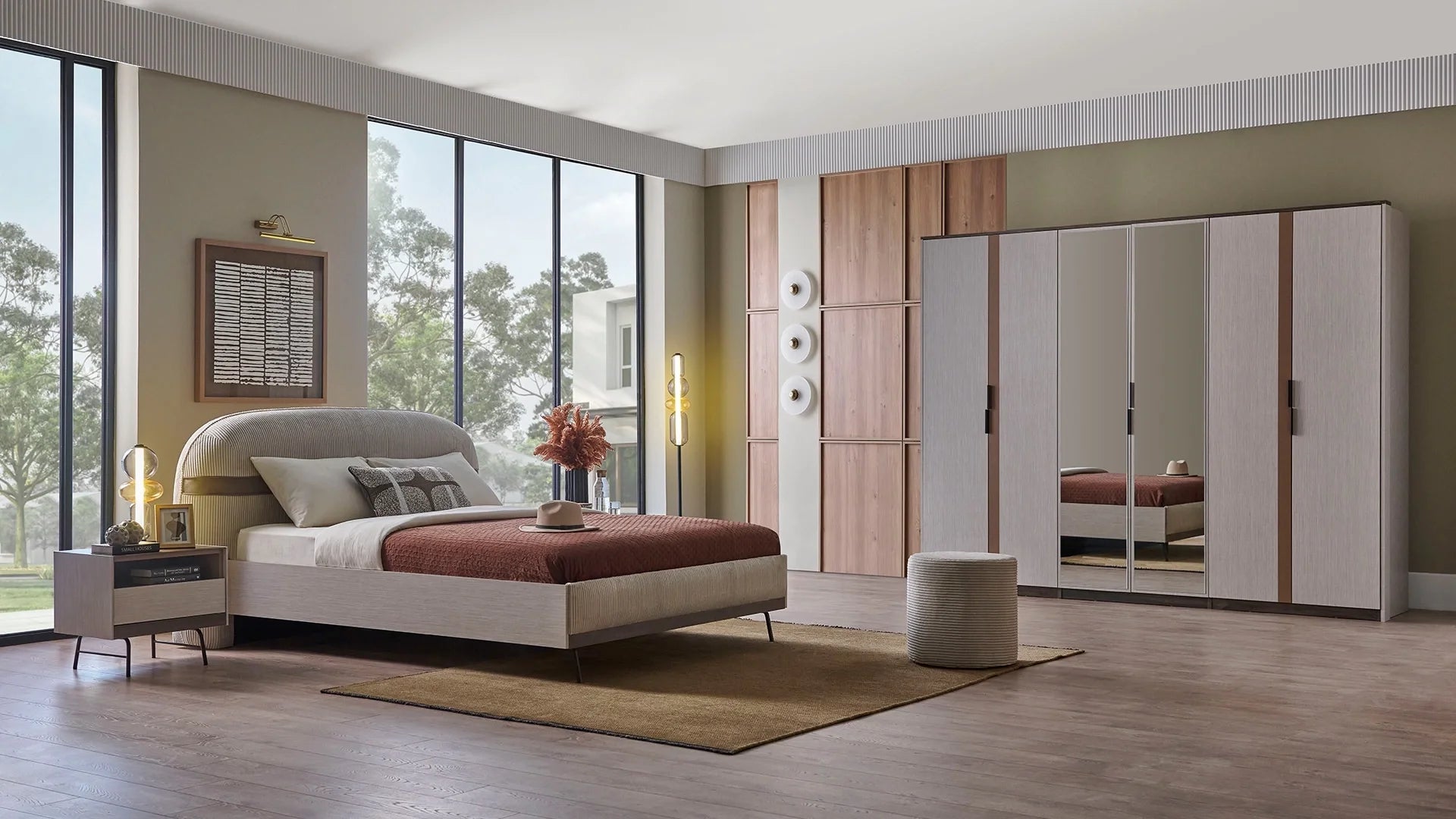- Upholstery: Velvet-Textured Fabric