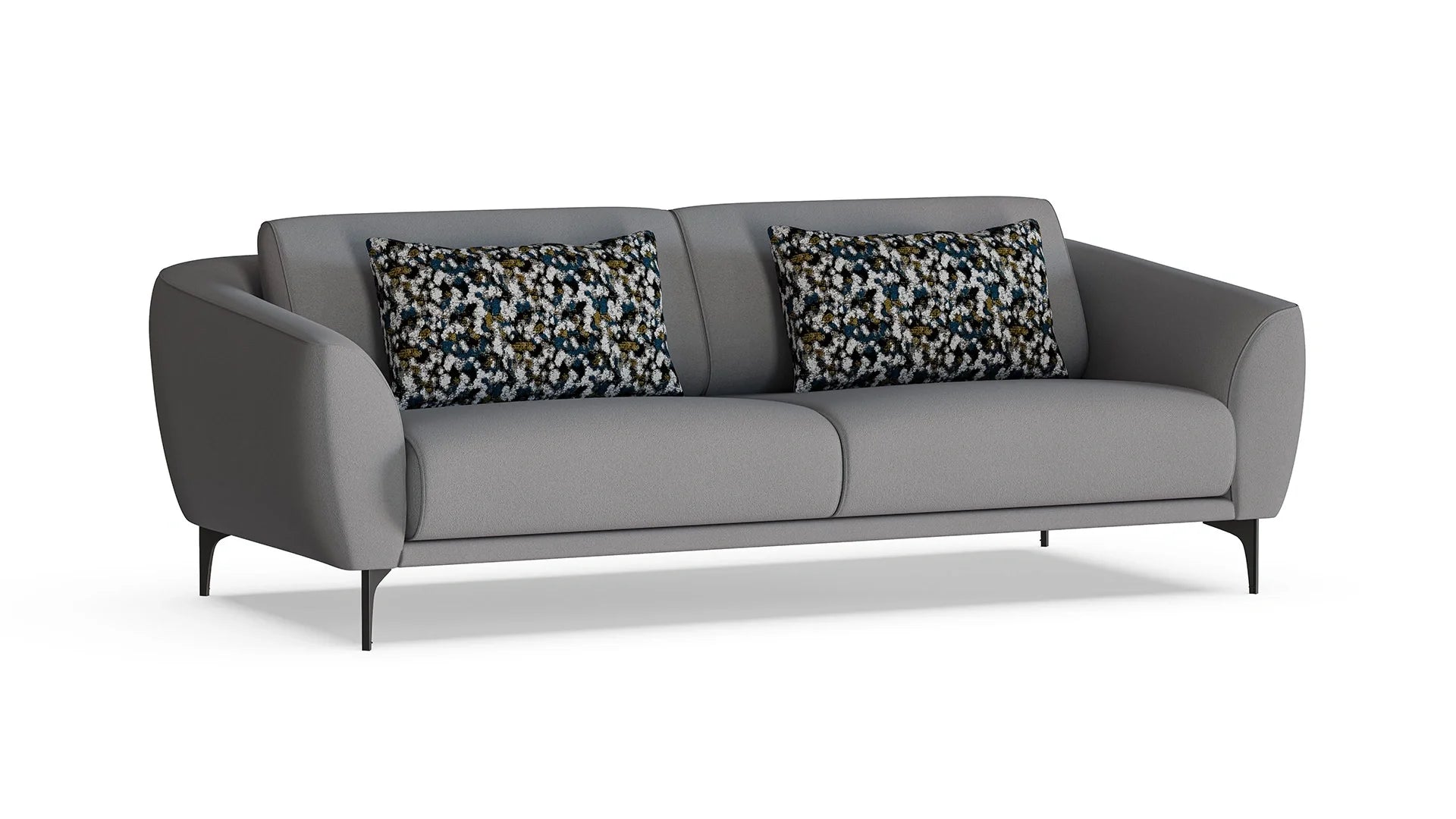 The Nevada Three-Seater Sofa blends clean lines with modern comfort, making it the ideal centerpiece for contemporary living rooms. Featuring a soft grey velvet-textured fabric and matte black metal legs, it offers exceptional support with its adjustable back cushion mechanism—perfect for those who prioritize both style and functionality.
