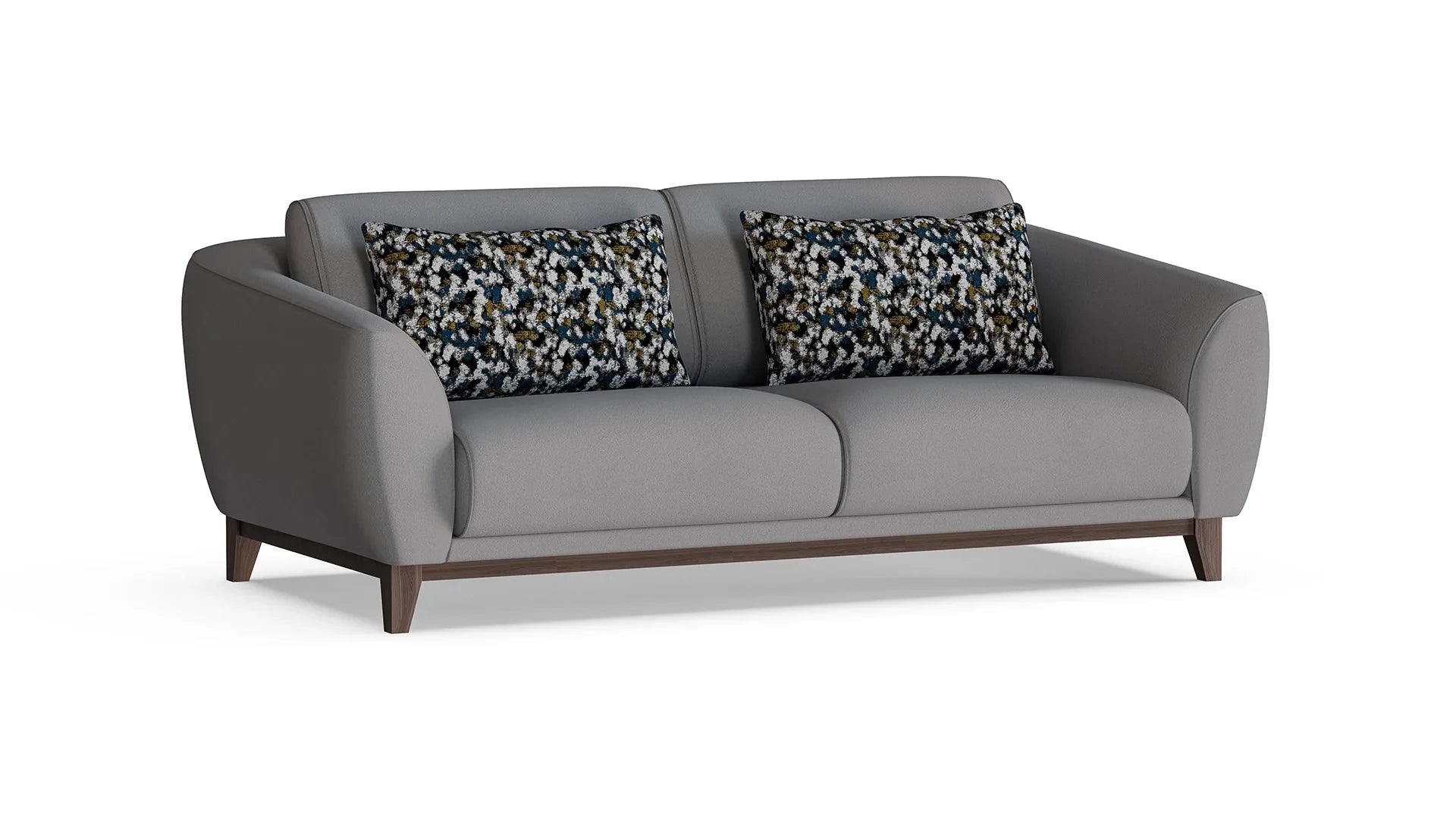 The Nevada Two-Seater Sofa pairs sleek design with exceptional comfort, ideal for modern interiors. Upholstered in elegant gray velvet-textured fabric and supported by matte black metal legs, this sofa features an adjustable back cushion mechanism to provide personalized support. Its minimalist form brings refined style to any living space.