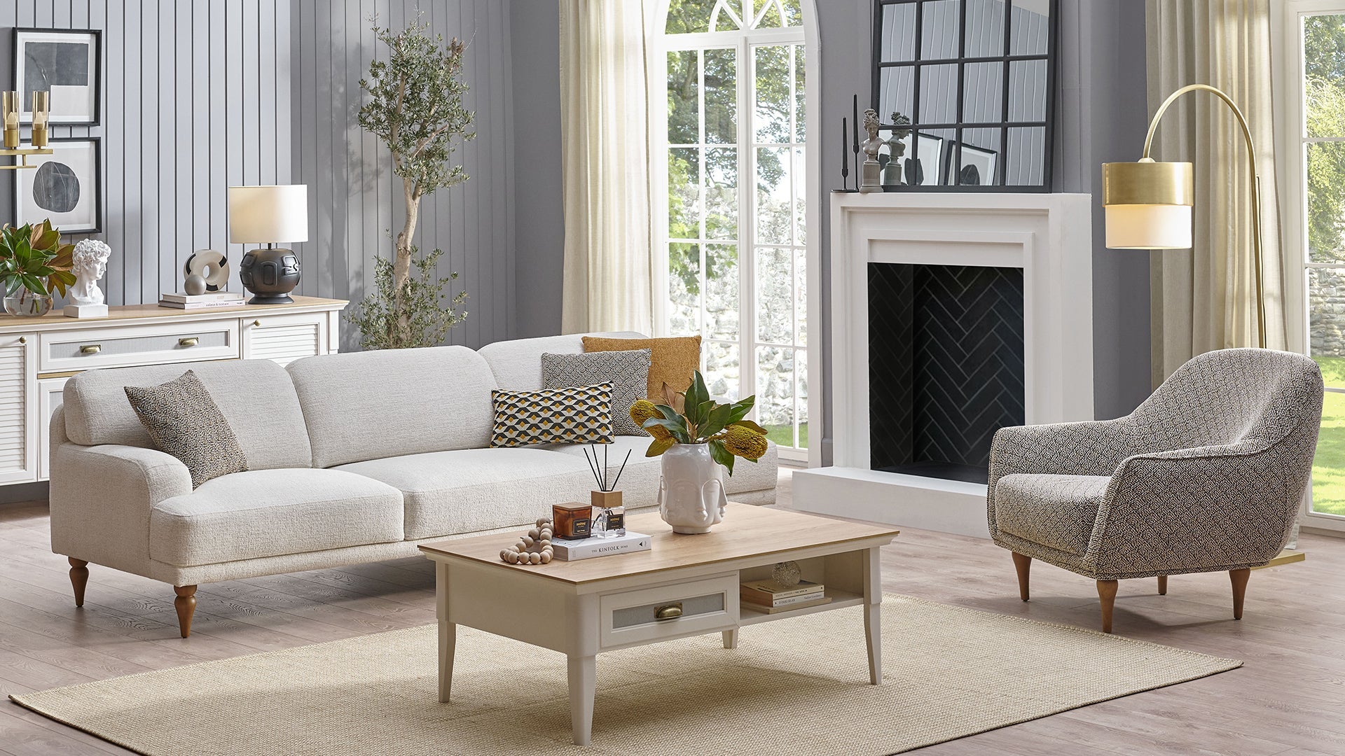 Get ready to add a stylish and natural look to your spaces with the Toscana Sofa Set, which reflects a refined taste. Designed with inspiration from the country style, the Toscana Sofa Set stands out with its elegant details. For instance, if you like modern touches at home, the foot design will amaze you. Besides, the option of a lathe foot strengthens the country-style look. The sofa set, which has both patterned and chenille-loop textured fabric alternatives, thus helps you have the furniture of your dreams. Buy the Toscana Sofa Set and perfectly match your furniture with it. You can also combine it with the other product groups in the Toscana collection.